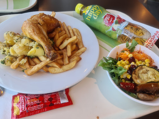 Als Zugabe ist die Freundlichkeit des Küchenpersonals und vor allem der Dame mit den schwarzen langen Haaren und des Lehrlings unter jeder Kritik. Bis auf eine Ausnahme lässt leider auch die Freundlichkeit des Kassenpersonals (und vor allem der bereits in anderen Rezensionen erwähnten Dame mit blond gefärbten Haaren) stark zu...