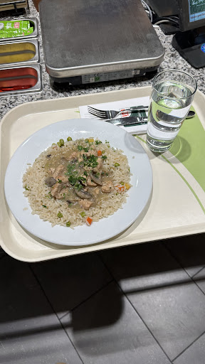 Read moreQualität der Speisen ist nicht großartig — und es bekommt nicht jede/r die selbe Menge. Während einige Portionen in Ordnung sind, ist bei anderen gerade der Boden des Tellers bedeckt. Da zudem das Fleischbesteck auch für die veganen und vegetarischen Speisen verwendet wird, ist das Restaurant leider kaum für Vegetarierinnen und Vegetarier zu empfehlen.