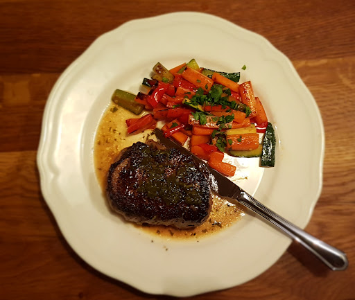 Was erwarte ich, wenn ich in ein Gasthaus gehe? Gutbürgerliche Küche, vielleicht zwei Fischgerichte und mehrere Fleischgerichte, aber was hier angeboten wird, ist einfach nur gutes, sehr gutes Essen auf sehr hohem Niveau. Als Vorspeise gab es Gamberone in Proseccobutter auf Rucola mit Chili, Knoblauch und gegrilltem Weißbrot, ein Gedicht. Bissfest, phantastischer Geschmack. Dann als Zwischengericht, man gönnt sich ja sonst nichts, kurz scharf angebratener Shashimi Thunfisch gebettet auf Sobanudeln mit pochiertem Blattspinat und Avocado. Frischeste Ware, wunderbar zubereitet, beste Shashimi Qualität. Hauptgang meiner Frau: Saibling am Stück auf dem Zirbenbrettl gegart mit gegrillten Kartoffeln, Gemüse und Rucolapesto. Feinste Geschmacksnuancen durch das Zirbenbrett, ebenfalls beste Fischqualität, wunderbare Geschmacksergänzung durch das Pesto. Meine Hauptspeise Tomahawk vom Duroc Schwein mit frischem Gemüse, auf den Punkt gebraten, ebenfalls hervorragende Fleischqualität. Kann mich nicht erinnern, das mal irgendwo besser gegessen zu haben. Und die Portionen sehr großzügig bemessen, eben wie in einem Gasthaus. Krönender Abschluss, der Chef ist Rumliebhaber und bietet zum Verköstigen diverse Rum an. Dabei sind wirklich exquisiteste Marken, ein abschließender Hochgenuss. Diese Verköstigung geht einher mit der kompetenten fachlichen Beratung durch den Chef. Zum Schluss muss der Service gelobt werden, aufmerksam, diskret, die Ehefrau des Chefs. Obwohl viele Gäste bedient werden mussten, verlief alles in ruhiger Atmosphäre. Ich hätte niemals gedacht, dass uns an diesem Abend ein absolutes Gourmet Highlight erwartete....