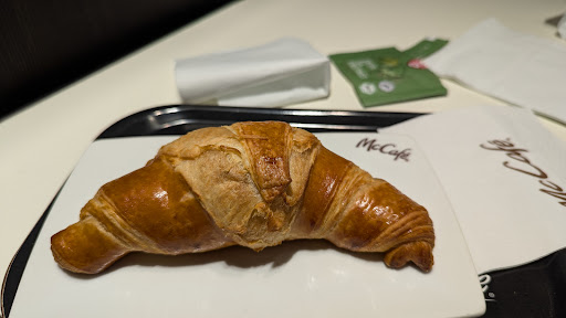 Very friendly! We went to have breakfast and we really enjoyed it. We had a Mc Muffin avocado and a Mc Muffin fresh chicken. It was very fresh. The avocado one was perfect, moist, tasty and refreshing. Personally I had to try the croissant with it. Not bad, certainly very edible but far remote from the real thing. I mean the French butter croissant. Since the croissant was invented in Vienna it is possible that it is the Austrian version. This one goes as far back as the 13th century. The croissant as we know it today dates from the 20th century and is French. The biggest problem at McDonalds is not getting too early into the pastries from the MC Cafe. Austria is really at another...