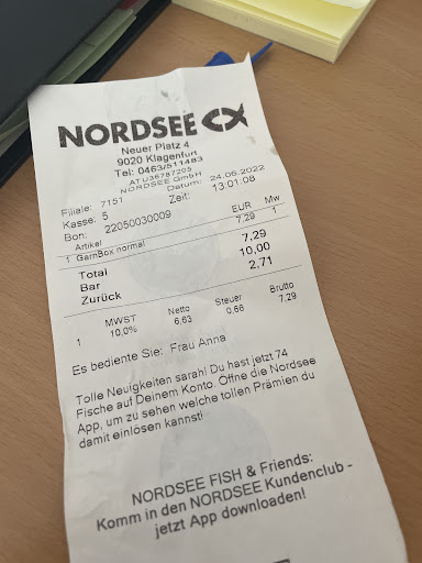 Read moreFür die Qualität ansich hätte ich drei Sterne gegeben, allerdings wegen des sehr ungünstigen Preis/Leistungsverhältnisses gibt's leider nur Zwei. Verstehe auch die anderen Bewertungen nicht! Fünf Sterne kann doch nur ein "Gourmet-Tempel" oder ein Lokal mit Sterneniveau bekommen, aber doch nicht ein Gassen-Verkauf mit Kantinenniveau. tststs.. Danke für die Antwort (siehe unten) . Aber ich habe nicht den Preis ansich kritisiert, sondern das Verhältnis desselben gemessen an der Qualität! Ich zahle auch gerne das doppelte, oder sogar mehr noch, wenn die Qualität dazu passen würde. Und bitten glauben Sie mir, ich weiß wie gute Fisch-Qualität, deren Zubereitung und Geschmack beschaffen sein muss und was diese im Einkauf und damit auch zubereitet im Verkauf kostet, oder, eigentlich kosten darf. Es ist nicht der Preis der bei Ihnen nicht stimmt, sondern die Qualität. Und nein, ich will auf keinen Fall "Coupons" zum "ordentlich Sparen", ich will nur angemessene und faire Qualität für den Preis den ich zahlen muss! Das wäre im Übrigen für Sie als Unternehmen dann auch wirklich viel "nachhaltiger" als in banale Marketing- und Werbefloskeln zu...