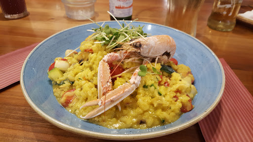 The food is good, but the attitude of the "greeter" woman devaluates the experience by a huge amount. The default answer is a very annoyed "no", regardless the question. First time we kindly inquired for a table (without a reservation), but instead of a polite response she rudely wanted to have us gone asap. Only after mentioning her colleague told us to come by at that time, there magically was a table available. A few days later when we asked about the options for take away pizza (which they do by the numbers), the same woman's response was so rude we just left and ordered elsewhere.