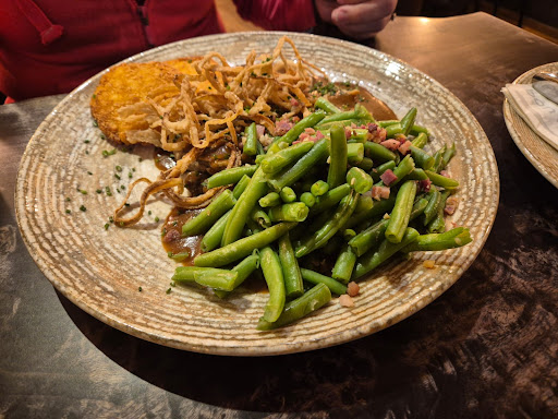 Möchte hier meine Erfahrung nach einem Mittagessen dort schildern. Das Ambiente ist okay aber jetzt auch nicht besonders warm und einladend. Hier wäre mit anderen Farbtönen, anderer Beleuchtung oder ein wenig mehr Deko noch viel mehr herauszuholen. Wie gesagt okay aber das man sagt: Wow sieht toll aus, sicher nicht. Das Preisniveau darf man für Knittelfelder Verhältnisse durchaus als gehoben betrachten, leider werden die Speisen dem gehobenen Preisniveau nicht wirklich gerecht. Wir hatten einmal Frittatensuppe, einmal Kärntner Kasnudeln und einmal Zwiebelrostbraten. Bei der Suppe hatte man das Gefühl, daß da zumindest mit Mariahilf (Tüte) nachgeholfen wurde, die Kärntnernudeln sind definitiv zugekauft und nicht selber gemacht, dafür sind knapp 14 Euro nicht angemessen, der Zwiebelrostbraten ist von der Fleischqualität her gut aber wie ein anderer Rezensent hier geschrieben hat hatte auch ich das Gefühl, dass bei der Sosse wieder mit Glutamat nachgeholfen wurde, die Bohnen schon leicht gräulich, vielleicht nicht schnell genug abgeschreckt. Auch hier wirken die knapp 20 Euro für die gelieferte Qualität wieder nicht angemessen. Was mir ausserdem weniger gefällt ist, wenn ein Teller wie beim Zwiebelrostbraten überladen wirkt. Auch der Klecks Sosse am Tellerrand auf meinem Teller ist ein Fauxpas der nicht passieren sollte ( Der Rand gehört dem Gast)