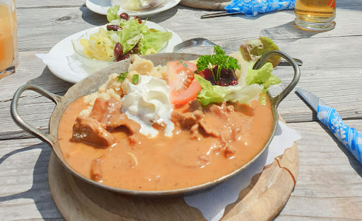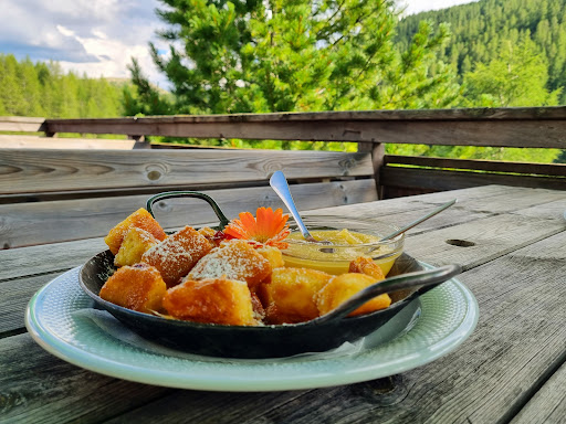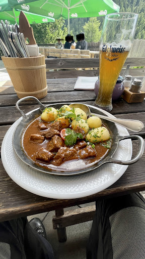 cozy, friendly, polite and efficient service. food options are plenty for an establishment at this location. the garlic soup is to die for, and so are the bratwurst with sauerkraut. ask for a side of crispy fries and you've had a great mountain lunch experience. there's also local delicacies that one can pick from. lovely place to wrap up the Nockalm Straße experience, if you are coming from...