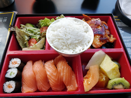 Great place to get asian food in the area! I ordered the sweet and sour chicken (rice is included) and my friend ordered the duck bento. Both of them were really great! The salmon and tuna on the sushi also tasted good and all of them were fresh enough. The chicken was tender and still somewhat crunchy. The sweet and sour sauce was also above average. The duck was also well above average with a delicious sauce served on top of it. The price to portion ratio is wild! The sweet and sour chicken was 10.80€ and there was really a lot of chicken, I was full at the end. Service and atmosphere was definitely what you would want in a fast food kind of...