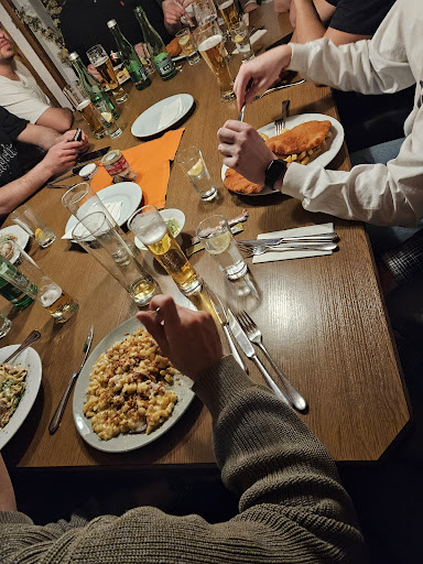 Was absolut unterirdisch war: Der Service. Der Kellner hat ein Drittel der bestellten Getränke einfach vergessen und musste nochmal neu die Bestellung aufnehmen. Okay, passiert an einem stressigen Abend. Das Essen kam mit Versatz von 10 Minuten, bis wir alle etwas vor uns stehen hatten. Bei einem Schnitzel fehlte die bestellte Jägersauce, mein Zwiebelrostbraten wurde mit Pommes statt mit Spätzle geliefert. Den Kellner darauf angesprochen: Jägersauce hat er nachgeliefert, die Pommes statt Spätzle wurden wortlos zur Kenntniss genommen, keine Reaktion, keine Entschuldigung, keine Entschädigung, nichts. Daraufhin habe ich ein Bier nachbestellt, das wurde einfach vergessen. Kam bis zum Ende des Abends nicht mehr. Keine Frage mehr, ob alles gut sei, kein Angebot einer Dessertkarte, gar nichts.