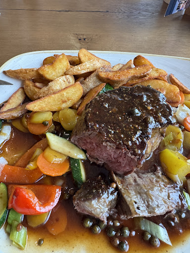Read moreDas Essen war wirklich sehr gut. Hatte ein ausgezeichnetes Beef Tartar als Vorspeise, gefolgt von einem auf den Punkt(Englisch,blutig)gebratenem Filetsteak-das ist selten anzutreffen! Dazu gab es Kartoffelwedges,die wirklich kross und heiß waren,dabei aber noch zart im Innern und Grillgemüse,das gar aber mit Biss war,zudem aus frischen Gemüse und keine TK Ware. Zum Abschluss einen Trauben-Eisbecher. Das Service Team war immer bemüht und zugegen,aber ohne aufdringlich zu sein. Die Speisen wurden zeitgleich bei uns serviert (4 Personen),aber auch die Gesellschaft am Nachbartisch(etwa 12 Personen) konnten gleichzeitig ihr Essen genießen,was heute kaum noch Standart ist! Ich bin also rundherum zufrieden und kann die Lokalität nur empfehlen. Man muss aber reservieren,da sich die Qualität rum...
