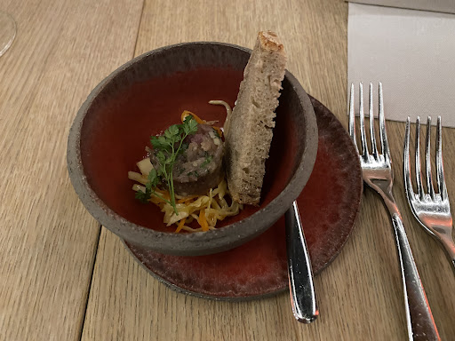 An adventurous and breathtaking journey on an extremely narrow road leads up to the Kogel 3 restaurant in southern Styria just before the Slovenian border. The view is certainly unique during the day, which I was unfortunately not granted to see and evaluate. The interior is tasteful and kept simple but noble. The staff is friendly attentive and shows humor. To give a final and fair evaluation is with scheduled and regularly changing chefs with a one-time visit - in a cheerful group and on top of that at Corona times - at the beginning of 2022 certainly not achievable with a visit, yet I would like to try. Since we had booked a menu with a fixed beverage selection, my evaluation is limited to this. There was an amuse-gueule in the form of a tuna tartare, which was very subtly seasoned, with a piece of rye bread. Unfortunately, the waiters were not very pro-active in taking the appetizer selection, so that many of my fellow guests, through ignorance, neglected to explicitly order the liver dumpling soup (very low-sodium flavored) or even a side salad (which I deliberately chose not to have). The beef tartare was well done in terms of craftsmanship and appearance. I looked in vain for a separate egg yolk or one that stood out from the tartare, as well as fresh pepper and salt from the shaker to adjust. Taste-wise it was - you guessed it - very fine, almost timid, seasoned, so to speak "á la nature". The liver dumpling soup consisted of a subtly salted beef bone broth which was provided with an insert of crunchy root vegetables and the eponymous liver dumplings. The dumplings - along with the sumptuous caper of beef tartare - were the most characterfully flavored components of the evening's menu. The main course was simple and unerringly selectable. As is generally known, you can never go wrong with a schnitzel in Austria. The term "Kalbswienerschnitzel" in the composition "Surf & Turf", which was my choice, unfortunately led to a misunderstanding. It was a meat plantlet on a potato puree garnished with two slices of truffle. My next-door eater had opted for a schnitzel, which fortunately came with a slice of lemon. I could use this only too well for my breaded and deep-fried squid, since it lacked any acidity, as well as the classic mayonnaise/sauce. To quote a well-known Bavarian top chef: There was a lack of speed. "In love" was the chef in any case apparently not, because everything was generally very restrained salted and spiced. Tastes are - fortunately - different, for me personally it was simply too "sparse" tasted. To my relief, from shortly after the beef tartare, before the soup or for most before the main course, salt and pepper were on the tables, so that I could at least season this both. The quality of the products was absolutely top: freshness and recognizably best choice. Nevertheless, I must clarify here once, just because you distribute two neat slices of truffle over a dish, it does not make it - at least to my taste and understanding - a world-class dish. I am an absolute mushroom lover, truffle has never been able to inspire me. It's kind of like garnishing a chicken egg cooked any which way with a teaspoon of sturgeon caviar and expecting to be judged a cooking genius in return. I couldn't get excited about a dessert because, according to our table waiter, there was only a sweet selection and/or coffee to choose from and I'm more of a cheese dessert type. If I had to sum it up, I would say: the chef acting at this time is tender with salt and absolutely sparing with any spice to the ingredients and leaves everything to its natural flavor, similar to the classic Japanese cuisine. I enjoyed the evening at Kogel 3, but I would not actively go there a second time. It was good, but just that, not outstanding or impressive and inspiring to colorful memory and rapture. For this simply lacked outstanding flavor peaks, corners and edges, with which all good cuisines play contrary and mutually supportive in taste. Therefore,...