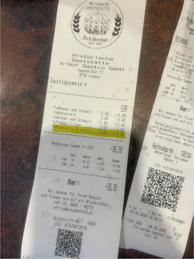 Read moreAbgesehen von dem mäßigen Essen, den unappetitlichen Toiletten (letztes Wochenende war die Damentoilette geflutet, von der Ausstattung ganz zu schweigen) und dem abgewohnten Ambiente ist der Umgang mit den Gästen eine Frechheit!!! (Sowohl im schwarzen Hund als auch im Arkadenhof) - bei der Reklamation einer versalzenen Suppe bekommt man die Suppe zurück, es wird mitgeteilt, dass die Suppe so schmecken soll und natürlich muss man sie (auch wenn man sie nicht isst) bezahlen. Bei der Bestellung eines Pago Mango wird ein Pago Marille serviert mit der Anmerkung "I hob a Pago Marille erwischt, wird aba eh wurscht sein". Im schwarzen Hund erscheint jede Bestellung von Getränken als zusätzliche Belastung für das Personal, welches dann mit patzigen Anmerkungen und einem "Klescher" auf dem Tisch platziert wird. Bestellungen werden falsch serviert und bei Reklamation mit genervtem Unterton ohne Entschuldigung entgegengenommen (Putenstreifen auf gemischtem Salat statt auf grünem - man bekommt grünen und reklamiert gemischten Salat - was man dann bekommt ist ein bisschen Kartoffelsalat auf den Teller und kalte Putenstreifen - sehr fein und das für 11,9 Euro!!!!) Ein Kinder-Wiener um 6,4 Euro wird mit Petersilkartoffeln statt mit Pommes bestellt, und bei der Rechnung fällt man dann aus allen Wolken, da das Gericht dann auf einmal "Seniorenwiener" heißt und 12 Euro statt 6,4 Euro kostet, wobei die Petersilkartoffeln alleine laut Karte 2,5 Euro kosten - wo kommen dann die restlichen Kosten her? Und das Erschreckende: das alles ist uns am vergangenen Wochenende passiert und das hat das Fass zum Überlaufen gebracht. Sehr oft haben wir uns schon über das Lokal, das Essen und das schlechte Service geärgert, aber leider gibt es an einem Feiertag in Leoben kaum Alternativen auswärts zu essen. Wir haben jetzt jedoch beschlossen: das war zu viel, die Lokale haben uns das letzte Mal gesehen - uns...