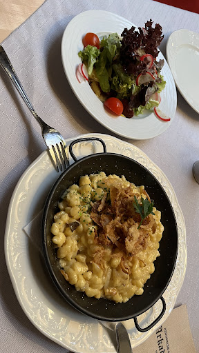 Eating in a restaurant whose building history spans from the 1550 and related to the famous Austrian Goser beer, can feel surreal and sentimental at the same time because the architectural design has almost been preserved through the generations. I have enjoyed meals at this restaurant on both my visits to Leoben. Their Viennese Schnitzel (veal/calf) tastes so good and so did the beef goulash. What I did not like is that the Goulash can only be served with a dumpling that did taste that good and it could not be ordered with something else like parsley potatoes or mash potatoes. I highly recommend this place for dinner if you are visiting Leoben. One more thing, the owner of the restaurant is so cool, so friendly and down to earth. Easy to talk to, he offered us a free tour of the historical restaurant! Located at the Leoben square: Arkadenhof; Gaststätte Schwarzer Adler 8700 Leoben am...