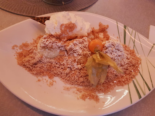 Ich muss gestehen, dass meine Erwartungen vorab nicht sehr hoch waren - bei der Gastronomie direkt am Veranstaltungsort dachte ich, dass das "Monopol" vielleicht ausgenutzt wird - aber ich wurde definitiv eines besseren belehrt! Das Putenschnitzerl war eines der besten, das ich je gegessen habe - mit leckeren Kartoffeln, einer ordentlichen Portion Preiselbeeren und einem sehr schmackhaften Salat. Die Größe war auch super und man wurde mehr als satt. Als Nachspeise gab es die Knödelvariation, die ebenfalls zu empfehlen ist - 3 verschiedene Füllungen, viele Brösel und sehr schön angerichtet. Auch der Service war äußerst freundlich und rasch - selbst bei der Menge an Leuten, die es zu bedienen galt. (Wir waren übrigens vor Viktor Gernot zum Essen dort und auch gleich gefragt ob wir den Tisch auch für die Pause wieder haben wollen, unsere bestellten Getränke standen dann...