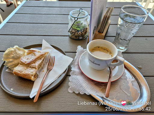 Im Zuge einer ausgedehnten Radrundfahrt machte ich halt, um die österreichtypische Klassikerkombination Kaffee, ein Glas Wasser und Apfelstrudel mit Schlagobers zu genießen. Ergebnis: Perfekt. Das Lokal ist modern und gepflegt und die beiden Servicesdamen sehr nett, flott, emsig und zuvorkommend. Genau so soll es sein. Das gern gegebene Trinkgeld sollte man nach der unproblemstischen Kartenzahlung am Tisch zurücklassen, weil es aus Systemgründen nicht mitverrechnet werden kann. War für mich aber kein Problem, weil ich für Derlei mit stets etwas Kleingeld gerüstet bin. Das einzige Manko ist, doch das ist situationsbedingt - gerade im Sommer aus dem kleinen Schanigarten - der Blick auf den Supermarktparlplatz und der Krawall, wenn LKWs über die unmittelbar danebenliegende Entladerampe des Supermarktes Waren anliefern. Doch der eingangs angeführte Service macht auch selbst das wett 😉. Es wird zwar etwas dauern, doch ich komme...