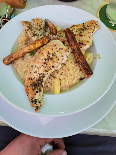 Read moreWir waren zum Frühstück dort. Die Lage mit dem gleich angrenzenden wirklich tollen Spielplatz ist ideal für Familien mit Kindern, das Service war freundlich und in Ordnung. Allerdings überzeugte das Frühstück gar nicht. Wurst und Käse waren Billigware, das “Müsli“ entpuppte sich als dieses Zimtchips- und Weizenpuffzeugs für Kinder und der Rest war lieblos in Plastik verpacktes Zeug - Jogurt, Honig, Marmeladen, Nutella. Unserer Meinung nach nicht mehr zeitgemäß. Lieber weniger von allem (kein Mensch schafft Brote mit Wurst, Käse, 2x Marmelade, Honig, Nutella, Ei, Fruchtjogurt, “Müsli“ und frische Früchte) und dafür bessere Qualität und vor allem nicht alles aus der Packung. Das ganze Plastik muss doch wirklich nicht mehr sein. Und der Kaffee dürfte auch deutlich besser sein. Hier ist also definitiv noch Luft nach oben. Rein von der Lage und Umgebung her hätte das Cafe bestimmt Potenzial, zu einem...