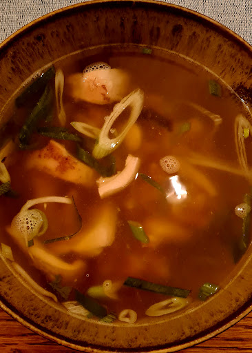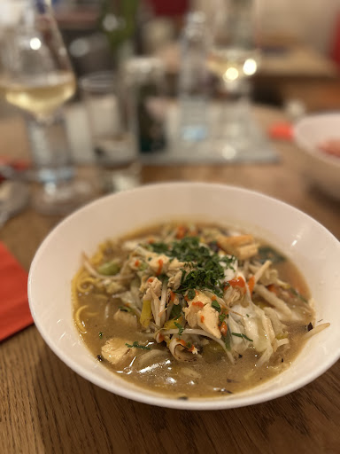 Wir hatten außerdem ein Curry mit Huhn bestellt. Auch hier - wir hätten es wissen müssen. Das Fantasie-Curry war vom Typ wässrige Suppe, und enthielt Dinge, die kein Asiate jemals in ein Curry geben würde. Stangensellerie? Ein No-Go. Koriander in ein Thai-Curry? Niemals. Paprika? Ebenfalls Fehlanzeige. Und darüberhinaus war das Huhn natürlich Hühnerbrust. Auch diese würde kein ernstzunehmender Asiate essen wollen, denn in Asien isst man die guten Teile vom Huhn (die mit den Knochen dran und viel Geschmack).