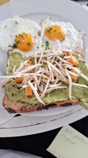 Read moreDas neue Deli ist vom Grundgedanken her ansprechend, allerdings geht es noch etwas chaotisch zu kam mir vor... Das Speiseangebot finde ich toll, allerdings sind ein paar Sachen meiner Meinung nach nicht ganz durchdacht... Für VeganerInnen oder AllergikerInnen ist es gar nicht so leicht, obwohl es vom Angebot und vom hippen Flair her irgendwie den Eindruck von healthy und clean macht... Es gibt keinen veganen Bowl und es steht auch nirgends, dass im Hummusdressing z.b. Joghurt drin ist, hätte ich nicht gefragt hätte ich ein Problem gehabt... weiters finde ich es schwierig Hafermilch als einzige pflanzliche Alternative anzubieten, da Hafermilch im Normalfall nicht glutenfrei ist im Gegensatz zu Soya oder Mandelmilch etc., außer sie haben eine glutenfreie Hafermilch, was natürlich toll ist, aber dann sollte das explizit irgendwo angeführt sein... Auch dass der Veggie Bowl einen Mix aus Quinoa & Bulgur enthält ist zwar toll, es wäre aber besser, wenn man entweder oder auswählen könnte, wenn man zb keinen Bulgur, also Weizen, essen möchte/kann... Allerdings war der Service (oder Chef?) sehr kompetent und machte mir eine Veggie Bowl ohne Quinoa/Bulgur und ein Dressig ohne Joghurt, was super war und es passte alles gut (leider fehlten dann auch die Edamame wie ich zu spät bemerkte - tja selber Schuld). Die musikalische Beschallung ist für meinen Geschmack auch etwas too much, um gemütlich im Gastgarten ein Gespräch zu führen, aber das ist hald subjektives Empfinden... Wenn das Angebot noch etwas bewusster organisiert und healthier wird, hat das Lokal für mich definitiv Potential und ich komme...