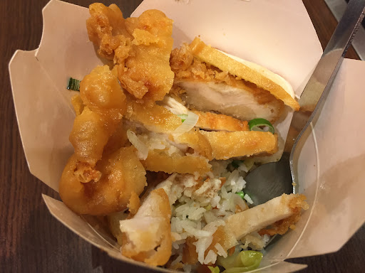 Read moreWar noch nie in meinem Leben bei so einem schlechtem asiatischen Restaurant. Ich entschied mich bei der unfreundlichen Bedienung für eine nudelbox mit Hühnerfleisch. Als mir die offene Box auf den Tresen gestellt wurde wartete ich noch länger auf meine Bestellung, als ich merkte, das es sich bei dem porzellan weißen Läpchen auf den Nudeln um Fleisch handelte. Das missbrauchte Hühnerfleisch schmeckte wie es aussah... Die Nudeln waren ganz ok... hin und wieder ein paar ranzige Zwiebeln aber besser als das Fleisch. Leider war die Toilette mit einer Baracke zu vergleichen... Jetzt warte ich auf meine Lebensmittel...