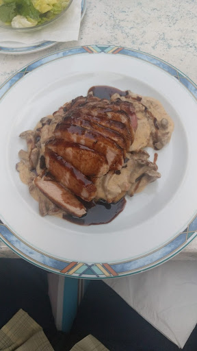 The bar/restaurant looks like you get some fries with a schnitzel... Which if you ask, may order (and is really a great tasty schnitzel)... But you order something like a meditaranian chickenbreast... Then you wait with a nice beer and get surprised. This is not an ordinary meal, this is really something from a high rated restaurant. The serving was a first surprise, but the flavors of the meal, delicious!