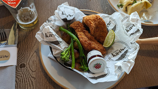 Es gibt einen Außenbereich (Gastgarten) und das Lokal ist zweigeteilt (durch die Bar und einen separierten Sitzbereich mit direkten Blick auf die Donau. Es hat eine Empore mit weiteren Sitzplätzen. Gut die Bestuhlung in dem Bereich wo wir saßen ist nicht so meins mit meinen Knien. Aber es ging. Hochstühle findet man nicht nur hier. Und da stellt sich für mich die Frage - ob das Tante Käthe zu ähnlich gestalteten Restaurants gehört?