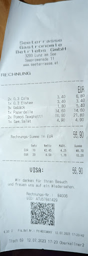 Read moreWe've been eating at the Seeterrasse for more than 20 years. But while our initial impressions of this place were not overly enthusiastic, the Seeterrasse has improved tremendously over the years to where we now look forward to eating there every time we are in Lunz am See. Our most recent visit was last week, and we had three meals there during our four-day stay, we enjoyed it that much. All the fish dishes are amazing -- we had wild Lunzer See trout -- but also be sure to try the vegetarian spinach knödle, two baseball size spheres of deliciousness in two sauces with shaved parmesan cheese on top. This place is always busy in season, so be sure to reserve, especially for an outside table, but if you eat either early or late, you should be OK without one. Impressive service. Dog friendly. Closed over the...