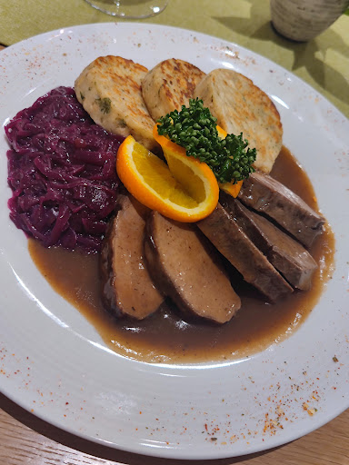 Jetzt das Essen, mein Mann hatte die Grammelknödel die jedoch wirklich und ohne zu übertreiben ungenießbar waren. Weder der Kartoffelteig noch der Saft waren selbst gemacht, was für den Preis wirklich ziemlich frech ist!