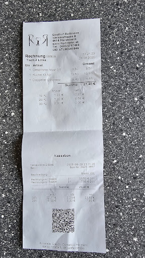 Read moreHatten heute Erstkommunion unseres Kindes und aßen bei der Gaststätte roitmeier.1.waren nicht alle Speisen auf der Karte vorrätig,2.war es geschmacklich fad,3.fehlt es ihnen an der Kompetenz des Koches.es kann nicht schwer sein das man das essen für das Auge auch schön macht und nicht alles geordnet(da die Karotten,da die Bohnen usw.)auf das Teller legt und zum Schluss 4. muss man sich von irgendwelchen angesoffenen Personen an der Bar blöd anmachen lassen.also für mich/uns Fazit ein mal und nie wieder.frechheit,hätte eigentlich ein schöner unvergesslicher Tag werden sollen,stattdessen bleibt der Tag bzw. die Gaststätte in...