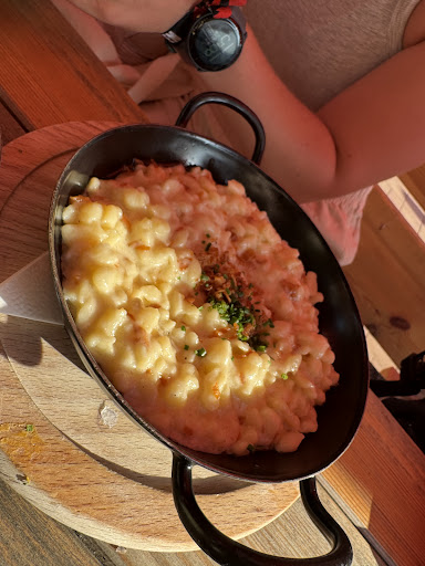 Read moreSehr gute Lage knapp oberhalb der Talstation. Nett und gemütlich eingerichtet. Die Kellnerin ist sehr derb und versucht speziell die deutschen Gäste zum saufen zu überreden bis sie sturzbetrunken (Zitat: na a bissl Obst geht nu - eine Runde Willis, und nun eine Marille für Alle....) sind ohne mitzudenken dass sie auch noch Schi fahren müssen und auch tun - zumindest bis zur Talstation. Also verantwortungslos. Die Preisgestaltung bei den Weinen und bei einigen anderen Produkten ist ein Wucher! Z.B. Zweigelt Reserve ein Achtel knapp € 5,-- wenn man bedenkt die Flasche im Einkauf rund € 7,-- oder weniger..... Das geht besser! Der zweite große Kritikpunkt ist, dass trotz behördlicher Auflagen die Servierkraft die Schutzmaske bei Gästen die schon länger im Lokal verweilen (steht näher als einen Meter bei den Leuten) großteils unter der Nase trägt - also eine stätige Verwaltungsübertretung begeht in dem sie die gesetzlichen Covid Auflagen nicht einhält und daher alle Gäste gefährdet. Auch das...