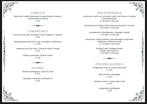 Read moreMit viel Idealismus gekocht und mit Liebe serviert! Ein Blick auf die Speisekarte verrät, dass die Betreiber keine Lust hatten, einfach nur von der Konkurrenz abzuschreiben. Das Angebot gestaltet sich nach dem Motto "Heimische Küche, neu interpretiert“. Einer der Vorzüge für den Gast besteht in der Möglichkeit, von jeder Hauptmahlzeit nur eine kleinere Portion bestellen. Alle Gerichte schmecken ausgezeichnet. Besonders lecker und ein regelrechter Geheimtipp sind die kreativen Eisdesserts. Lobend hervorzuheben ist die Initiative, dass die Zutaten nahezu gänzlich aus dem Bundesland Salzburg stammen. Die Eier stammen aus einer eigenen Freilandhaltung. Last not least bietet das Gasthaus zusätzlich zu diversen Gerichten auch eine anspruchsvolle Weinkarte und obendrein die Option, den Abend in einem stilvollen Weinkeller zu verbringen. Auch für größere Gesellschaften besteht die Möglichkeit, in entsprechendem Rahmen frohe Feste und Veranstaltungen zu feiern. Ebenso sind alle jene, die ein Meeting in einer geeigneten Räumlichkeit durch kulinarischen Genuss aufwerten wollen, an der richtigen Adresse. Öfters vorbeischauen lohnt sich, immer wieder ergänzen neue Ideen das vorhandene Angebot....