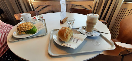 Read moreDer erste Eindruck war vielversprechend: moderne Einrichtung, eine ordentliche Siebträgermaschine und eine vernünftige Auswahl an Kuchen und Backwaren. Leider blieb es dabei nicht. Die Mädchen hinter der Theke haben leider keine Ahnung von dem was zu tun ist. Wir bestellten einen Cappuccino und einen Latte Machiato. Was wir bekommen haben war eine heisse Milch, randvoll bis zum oberen Glasrand gefüllt, null Milchschaum und leider so gar kein Geschmack von Kaffee. Nachdem wir unsere Unzufriedenheit mit den Getränken kundtaten, sagte man uns: „ich mache hier nur das was mir gesagt wurde.“ Offensichtlich hilft die laminierte Anleitung an der Kaffeemaschine nicht bei der Zubereitung… der Spruch auf der Untertasse beim Anheben des Glas „man soll guten Kaffee mit allen Sinnen genießen“ wirkte da fast schon wie Comedy. Der Kuchen war...