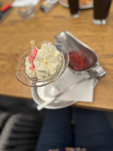 Read moreWir waren spontan mit einer kleinen Gruppe dort. Das Restaurant und Café sind kombiniert – gemütliche Atmosphäre. Ich habe einen Eiskaffee bestellt der war gut. Die Spaghetti und die Pizza haben uns leider nicht überzeugt: Der Teig war nicht so etwas geschmacklos. Dafür war das Dessert „Heisse Liebe“ (Vanilleeis mit heissen Himbeeren) sehr lecker und auf jeden Fall zu empfehlen! Es stand zwar auf der Speisekarte, aber der Kellner hat uns alles genau erklärt – das war hilfreich. Der Service war insgesamt schnell, freundlich und...