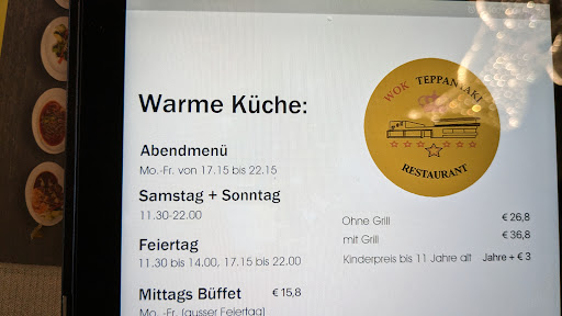 The all you can eat buffet is currently (August 2023) priced at âŹ15.80 on regular weekdays and includes a limited number of items compared to the competition (Engel Wang Fu for example). A few hot options with beef, chicken, duck, prawns or fish, some vegetables, fries, noodles...a couple of soup options and also some sushi (incl. salmon, prawn). For desert a few fresh fruits option, canned fruits and some cakes as well as ice cream.