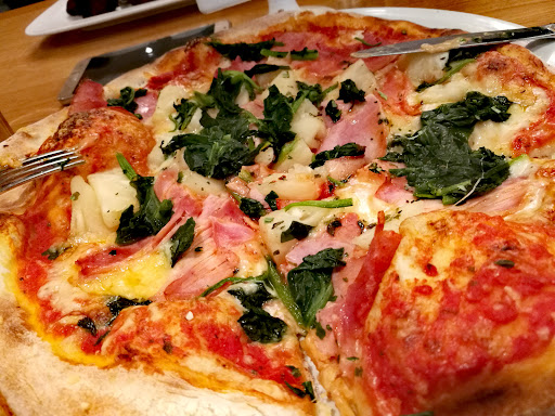 we came into the bar and we went to the counter. we asked the waitress to order and she rudely sent us back to our table. she came and we ordered three pizzas and a strudel, than she asked us if we wanted something to drink and we said no, so she went away snorting. the food was quite good but the staff was...