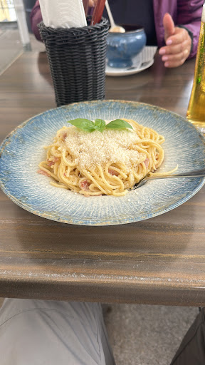 Read moreCi siamo fermati ingolositi dalla voglia di pizza ma, alla fine abbiamo scelto altro. Non che non sia stata buona (l’ho vista passare e mi sembrava bella) ma la voglia di pasta ha superato tutto! Pasta alla carbonara (tra le mie preferite) ha preso il sopravvento. Premesso che sono italiano, il cameriere mi dice che il cuoco è mio connazionale (la pasta è una cosa seria) ma parlando con il cuoco, che parlava bene l’italiano, scopro che è Macedone ! Allora mi informo di come fa la carbonara e superato l’esame passo la comanda. Devo dire che l’esame l’ha superato ed era anche migliore di alcune pasta alla carbonara mangiate in patria. Unico appunto che gli ho fatto: un uovo in più sarebbe stato perfetto! Beh, abbiamo mangiato veramente bene, cuoco simpatico e premuroso e cameriere cortese e attento. Se siete da queste parti, in questa valle meravigliosa e volete mangiare un’ottima pasta beh, l’indirizzo lo trovate sopra al post. Ah dimenticavo. Noi abbiamo pranzato su un terrazzo che si affaccia sul torrente, ma il resto dei posti è all’interno della struttura, molto capiente e a...