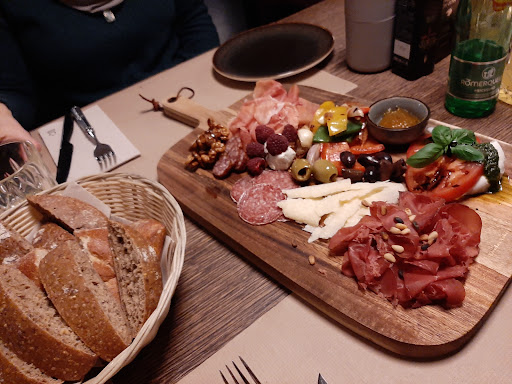 The food was exceptionally delicious! We had the antipasti plate for 2 persons as an appetizer which was enough to feed 4 people and offered a really broad and good selection. Most of us ordered Pizza which tasted very good too. I had the grilled vegetables with goat cheese and a mixed salad as a side dish. It was absolutely delightful! All appetizers came with bread which itself was already really tasted and together with the oil selection at the table... They only offer a small selection of drinks but when I asked for a hot drink, they offered me to get me something from downstairs which was one of the best tea I have ever had. The only small thing to critize is that the staff wasn't extremly friendly and it was sometimes a little bit difficult to get a hold of them. If you would like to pay separately, you should tell them before, it is a little bit difficult for them... but despite that I can definitely recommend coming here. The prices aren't cheap but definitely reflect the value...