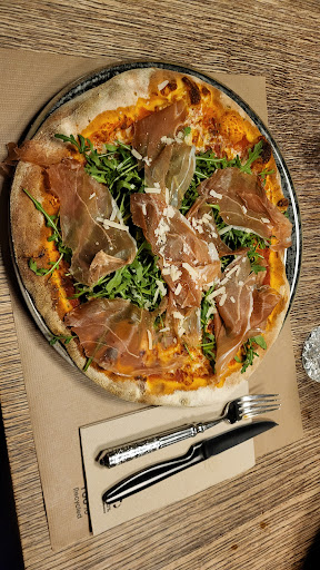 Read moreZum Ende des Kurzurlaubes gehe ich noch Pizza essen, zum Kuckuck, gleich gegenüber des Hotels, und sitze auf der Terrasse. Der Wind bläst mir den Rucola von der Pizza, und der Tisch ist alles andere als standfest. Die Sonne brennt gnadenlos nieder (Aber nicht mehr lange). Das Bier (Trumer. Bekommt man nicht oft) kostet € 5,40. Fast wie daheim. Wir haben ein junges Team in einem modern eingerichteten Lokal. Hauptsächlich gibt es Pizza (Holzofen), aber auch andere italienische Gerichte (Auf einer Extrakarte. Die Kritik das es keine Pasta gibt, hat wohl gefruchtet). Finden sollte weder was. Wer hier arbeitet, muss sportlich sein, das Service (Ziemlich viele Leute bei dieser Lokalgröße) steigt öfter die Stufen zwischen Bar und Restaurant. Bestellen, servieren, und Sitzplätze zuteilen scheint genau zwischen den einzelnen Mitarbeitern geregelt. Es geht doch nichts über klare Strukturen.