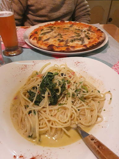 Read moremeine Frau und ich gingen auf Empfehlung unseres hotels dort essen. schnell wurde uns ein platz zugewiesen und die Bedienung(wohl die Chefin) nahm recht freundlich unsere Bestellung auf. meine Frau bestellte als Vorspeise minestrone und ich eine knoblauchcreme Suppe. als Hauptpreise sollte es pasta und pizza sein. soweit so gut! ca zehn Minuten später kam die Bedienung, telefonierend, mit unseren Suppen und stellte es wortlos auf den Tisch und ging weiter. ok, dachten wir. die minestrone schmeckte nach nichts und das enthaltene Gemüse war sehr hart. meine knoblauchsuppe bestand aus aufgewärmter sahne in die roher Knoblauch reingeschnitten war. irgendwann kam dann die Hauptspeise. meine pizza war auf einer hälfte verbrannt und die pasta war absolut geschmacksneutral. etwas anmerken oder nach salz und Pfeffer fragen konnten wir nicht, da die Bedienung zwar ständig an uns vorbei lief, aber leider keinerlei Beachtung schenkte. irgendwann erwischte ich eine andere Bedienung und fragte nach der Rechnung. es wurde lut nach der anderen Bedienung (Chefin) gerufen "deine Gäste wollen zahlen" ich war kurz zuvor etwas ins auto holen und sah das sie am essen war, was sie dann auch nach der frage der Rechnung, gemütlich beendete. aber anstatt dann endlich mal die güte zu haben und uns ab zu kassieren, ging sie zur Kaffeemaschine und bereitete sich einen kaufe zu. natürlich nicht, ohne vorher den satzbehälter zu entleeren und Wasser aufzufüllen. es wurde nicht gefragt, ob es geschmeckt, oder ob alles in Ordnung war. trinkend gabs natürlich keinen cent. was noch sehr nervig war, das Telefon läutete in einer tour und in einer Lautstärke das es wohl bis ans andere ende des restaurants zu hören war. der ton am Telefon war auch sehr unfreundlich, wie wir oft mitbekamen. dieses restaurant sollte man...