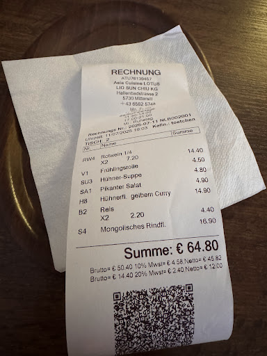 Read moreIf you need a break from Wiener schnitzel, head to Asia Cuisine Lotus in Mittersill. This little Chinese spot has no business being this good in the middle of Austria. The spring roll is more like a strudel—crispy, golden, and filled with an unexpectedly delicious mix that makes it a surprise standout. The Eight Treasures stir-fry sauce is packed with flavor, and the fried rice could easily hold its own as a main dish. The chef, an Indian-born, Chinese-descent Vienna transplant, brings his unique background to every plate, and it shows. Easily the best meal of our...