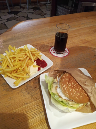 Als der Kellner/Koch zu mir kam, um meine Bestellung zu nehmen, und ich ihn fragte, ob er mir den Veggie Burger ohne Käse und Rahmsauce machen kann, hat er komplett das Gesicht verzogen, hat sich bemüht, mich blöd anzuschauen, und dann tat er so, als versteht er nicht, was ich gerade bestellt hatte. Als ich es ihm nochmal erklären wollte, hat er mich dumm angeschaut, unterbrach mich, und hat sich an meine Kollegen gewendet, um deren Bestellung zu nehmen. Dann ist er ganz am Ende noch einmal zu mir gekommen, immer noch mit Grimasse, und hat mich dann noch ein weiteres Mal wie ein Kind behandelt, und hat blöd gelacht, nachdem ich ihm meine Bestellung nochmal sagte.