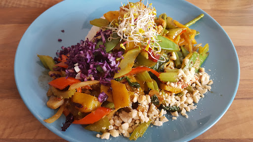 I find this place to be consistent in providing tastefully prepared healthy cusine. Nutrient dense sprouts curcuma and sesame seeds as well as bio products are often used. Food is always freshly prepared. A must for vegetarians and vegans. Ample parking. Service...
