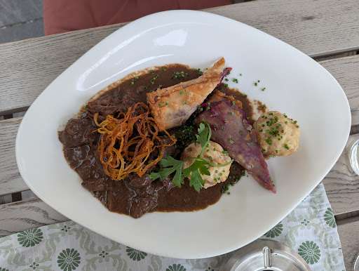 Very friendly service. They had the menu written in a German / Austrian dialect and we found it fun to try and figure out the menu items (we know German but some words were not known). The waitress had some fun with us explaining what we did not quite understand, and we managed to get our order done with a laugh on our face. The food was very good and the beer excellent. We wanted to try out the Austrian dishes and although we are not especially impressed with this cuisine (schnitzel, potatoes, etc), the food quality was really great. I highly recommend the place for the fantastic service, friendly staff, great atmosphere and very good...