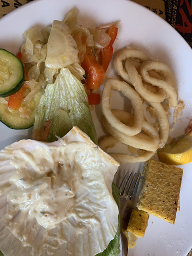 Read moreSehr enttäuschend. Man ließ uns eine Stunde warten und die „gebackenen Calamari“ erwiesen sich als die großen, zähen Gummiringe, wie man sie von Kantinen kennt, mit einer langweiligen Mayonnaise, korrekterweise als „gebackene Tintenfischringe“. Bei einem Italiener stelle ich mir das anders vor und kenne und schätze es auch anders. Am Nebentisch wurde eine Familie, die nach uns kam, flott mit Haupt- und Nachspeise versorgt. Wenn ich nicht müde und hungrig gewesen wäre, hätte ich es...