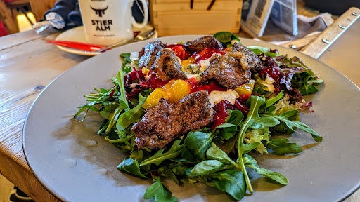 Die Stieralm ist ein wirklich schönes Restaurant zum Einkehren an der Skipiste. Moderne, dennoch rustikale Einrichtung im gehobenen Stil. Wir waren dort zweimal Mittagessen und es war beide Male sehr lecker. Das Essen kam schnell und auch die Bedienung war sehr freundlich. Bei unserem zweiten Besuch ist uns allerdings etwas aufgestoßen. Dort kam eine Gruppe mit etwa zwölf Männern auf die Stieralm - offensichtlich bereits angeheitert. Unsere eigentlich entspannte Mittagspause verwandelte sich damit in einen Mix aus Fußball-Gegröle, schlecht angestimmten Schlagerliedern und sexistischen, sowie frauen- und schwulenfeindlichen Bemerkungen. Alle Gäste fühlten sich von der überaus lauten Gruppe gestört, doch das Personal hat nichts unternommen. Ich kann verstehen, dass so etwas üblich ist im Skigebiet, aber dann soll man das auf der Apres Ski Hütte machen und nicht in einem gehobenen Restaurant, wo Familien mit Kindern, sowie andere Skifahrer eine ruhige Pause genießen wollen, bevor es wieder auf die Piste geht. Wir sind dann gegangen. Eigentlich schade, sonst wären wir sicher noch auf ein Dessert geblieben. Beim gehen beschwerten wir uns noch einmal beim Personal. Doch dieses meinte, es könnte leider nichts tun. Sie sind hier auch nur Angestellte, müssen freundlich bleiben und können nicht einfach so Gäste rauswerfen. Das verstehe ich. Ich finde, hier sollte das Management entsprechend Maßnahmen ergreifen. Jedoch von dieser unschönen Erfahrung abgesehen ist die Stieralm ein schönes Restaurant und vielleicht werden wir sie nächstes Jahr...