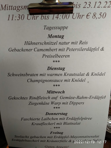 Read moreGrundsätzlich ein tolles Lokal, aber die Kellnerin vom 24.1 eine absolute Katastrophe. Ich würde keine Sterne verteilen für diese Unart. Wir waren um 19 uhr dort, um 8 wollte meine Begleitung einen Cafe, da bekam sie alt Antwort das die Kellnerin schon die Cafe Maschine geputzt hat und das sie um 10 zusperren will.... Um kurz nach 9 wurde die Beleuchtung und die Musik abgedreht und die Kerzen ausgeblasen (außer auf den Tischen die noch besetzt waren) zu dem Zeitpunkt waren noch ca 11 Personen im Lokal. Um 21:40 wollte ich noch etwas zu trinken haben, dann sagte sie zu allen Gästen genervt "will sonst noch jemand was zu trinken, das ist die letzte Runde".... So ein Benehmen hatte ich zuvor noch nie erlebt, sie wirkte generell genervt. Die Gäste anfauchen ein...