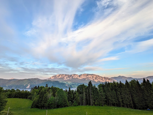 Nach einer langen Wanderung waren wir echt erleichtert, als wir die Jausenstation erreicht haben und sie geöffnet hatte. Uns wurde auf dem Weg von anderen Wanderern gesagt, dass sie manchmal wegen geschlossenen Gesellschaften wohl geschlossen hat. Der Service war super und relativ schnell. Das Essen und die Atmosphäre gut. Wir haben ein Käsebrot (4,80€), Käse-Schinken-Toast (6€) und Kaiserschmarrn (10,50€) gegessen und natürlich getrunken. Die Brote waren simple aber gut. Den Kaiserschmarrn würde ich nicht empfehlen. Sehr teigig und einfach nichts besonderes. Die Aussicht ist schön. Es ist hier nicht so viel los und auch keine besondere Atmosphäre. Keine Musik im Hintergrund aber eine schöne grüne Aussicht ...