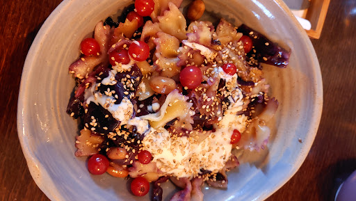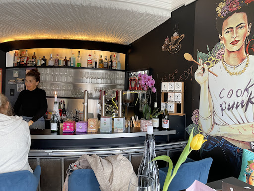 Gute Freunde haben mich mitgenommen und mir Lila`s Bistro wärmstens empfohlen. Sie haben nicht überrieben. Da ich Tiere liebe und Vegetarierin bin und mir das ewig gleiche Pasta und Pizza- Geschlampse der kulinarischen Restaurant-Wüste nicht mehr antun möchte, koche ich mittlerweile lieber daheim. Aber dieses Essen war eine Überraschung. Harvest Bowl - ein prickelndes Feuerwerk von Frische und exzellentem Geschmack. Eine Kombination von sanft-säuerlichem Salat mit roter Beete usw., und weiteren warmen, duftenden, schmeichelnden Zutaten, farbenfroh angerichtet in rustikaler Schüssel. Meine Freundin teilte mit mir ihre daraufliegenden karamelisierten Nüsse, die leider bei mir fehlten und doch das Tüpfelchen auf dem I waren. Weshalb man alles englisch benennen muss entzieht sich meinem Verständnis, aber diese Küche ist eine Sünde wert. Lila entfacht in ihren Speisen eine Explosion von Aromen und Genuss. Dazu Apfel-Süßgras-Saft mit Wasser. Ich habe gleich beide Hauptgerichte bestellt - unvergesslich und lohnenswert. Das Ambiente freundlich, klar, große, bunte, fröhliche Bilder, alles passend zu den ausgefallenen Gerichten, und man kann der attraktiven Chefin nebenher ein bisschen bei der Arbeit zusehen. Hier war ich definitiv nicht...