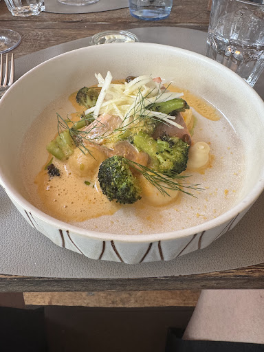 Read moreLa location del ristorante Stiftsschmiede è veramente rimarchevole: a bordo lago, con barche che si muovono silenziose (elettriche) e con un bel panorama dominato sulla sinistra dalla Gerlitzen, meta invarnale famosa per le sue piste di sci.||Stiftsschmiede offre un menu di carne e pesce, privilegiando i prodotti locali, i pesci di lago e di fiume, la carne della fauna locale, gli ortaggi e le erbe tipiche del luogo. Il tutto accompagnato dei vini della Carinzia.Siamo venuti con un gruppi di una sessantina di persone, amici carinziani ed austriaci. Il personale ci ha accolto rivolgendoci a noi in italiano, ed offrendoci un brindisi per accompagnare un buon 'risotto' di grano saraceno con verdure e funghi, servito nella terrazza sul lago, buono e particolare. Abbiamo continuato nella sala interna con antipasti, uno dei quali a base di trota marinata di lago, seguiti da una zuppa di gamberi di fiume (veramente ottima) come primo, e dai secondi: un filetto di trota di lago ed un'ottima sella di cervo. In un angolo della sala a volte (dall'aspetto antico), viene fatta la cottura con la griglia e vengono preparati i piatti da servire. Abbiamo bevuto delle bollicine rosè Sax, del Weissburgunder (pinot bianco) Sax 2016 Langenlois (molto buono ed apprezzato) e un rosso St. Laurent Weingut Hühnel Gumpoldskirchen 2012, buono. Dopo i dessert abbiamo assaggiato la grappa di Pfau. La serata è stata allietata dal suono di un arpa magnificamente suonata da una giovane musicista, e da 4 cantanti che hanno intonato tipiche canzoni carinziane. Personale gentilissimo, il titolare sempre presente e premuroso, il prezzo assolutamente non esagerato. Una pranzo iniziato molto tardi (alle 14.30) che si è piacevolmente protratto fino alle 18.30. Il luogo è veramente incantevole e offre anche la possibilità di soggiornare sopra all'htel in bellissime suite fronte lago e nel vecchio grande convento retrostante, trasformato in moderno hotel. Siamo tutti rimasti molto soddisfatti!...