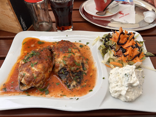 Read moreEssen: Das Lokal bietet griechische und italienische Speisen an. Wir wählten italienisch und waren von der riesigen Auswahl an Pizzen überrascht. Wir wählten 1x Gemüse und 1x Lachspizza. Die Wartezeit war trotz des gut besuchten Gastgartens kurz und als der Kellner die Pizzen brachte, trauten wir unseren Augen nicht! Die Pizza ist riesengroß und optisch ansprechend. Und was am wichtigsten ist ... geschmacklich hervorragend! Der Preis für die Größe sehr fair!