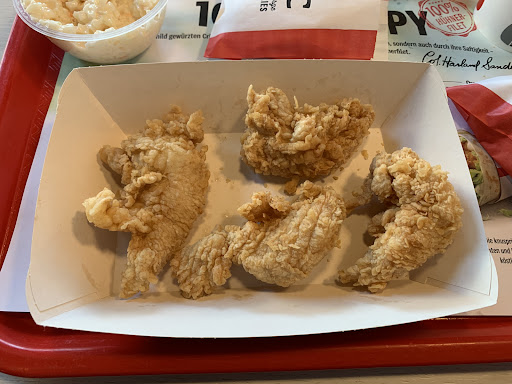 Read moreVery rude and unfriendly staff! I ordered a bucket of chicken strips and they were pale white and soggy!!! Nothing about them was crispy! They were almost wet! They looked more like chunky fish strips than chicken. When I complained about them the lady at the register with the glasses very rudely grabbed one out the bucket and broke it in half to show me it was cooked and that I have no right to complain! I was shocked by the behavior. I will never come back to this KFC again....