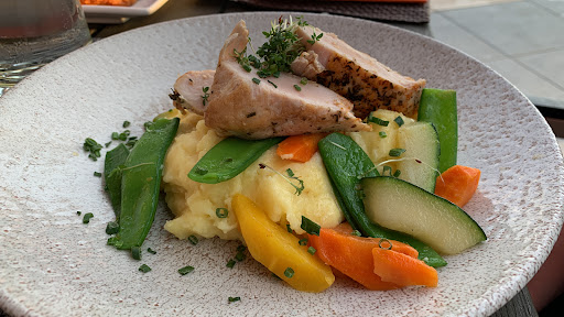 Sie bezeichnen sich selbst als Restaurant, dabei erfüllen sie meiner Meinung nach nicht den nötigen Standard. Das Ambiente ist sehr schön und ruhig. Will man aber etwas bestellen, kann die Getränke&Speisenaufnahme schon etwas länger dauern, und das ist nicht Massen an Besuchern geschuldet. Das Personal wirkt wenig geschult und unbeholfen. Außerdem ist es durch Casual Look statt Arbeitskleidung, schwer zu unterscheiden. Die auf der Website so hohe angepriesene Fleischqualität lässt zu wünschen übrig. Das Schnitzel war voller Sehnen und Flacksen und die Pommes lapprig und kalt. Außerdem war das Fleisch mit und nicht gegen die Faser geschnitten, was das Mundgefühl stark beeinflusst. Meine Begleitung bestellte sich den Steckerlfisch den es nur an manchen Tagen gibt. Ein ungewöhnliches Gericht für ein Restaurant, da Steckerlfischbuden eher in Bistro& Imbiss zu kategorisieren sind. Überraschend war die Platzierung des ca. 30cm. Fisches mit einem knapp 50cm Holzstecken auf einen viel zu kleinen Teller, sodass es so aussah als würde er links und rechts runterfallen. Geschmacklich war er ok, aber das Geld definitiv nicht wert. Generell wirken die Preise eher gewürfelt als berechnet. (Bsp. ungefähr 8€ für ein Käsebrot). Zwischendurch kam auch noch ein verschwitzter Mann mit Schweißflecken am ganzen Körper und einem strengem Geruch vorbei, der sich lautstark mit "scheinbar seinem" Personal unterhielt. Ob er tatsächlich der Inhaber ist, konnte ich nicht mit Gewissheit feststellen. Allgemein würde ich dieses Restaurant nicht als professionell beschrieben, und es fehlt an Führungsfähigkeit...