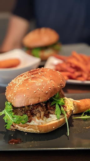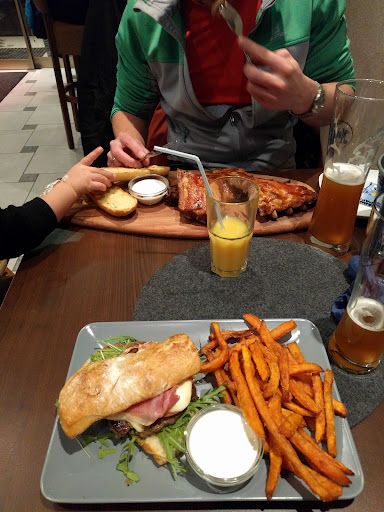 Something crazy about burgers! We try it all! I can say you for sure every 5+ tastes! I don't like italian one because of italian bread and sour sous. But! Soooooooooo uncredible tasty. We eat at home &at this place. I don't want to try anything else..I don't eat meat for half of year, but I start again because make a bite & couldn't stop..wish you to reserve a table.always full. They are child friendly.have baby menu - like nuggets,..and even have baby chair :) ooo not forgot - try their fresh bear on tap. Especially we like local white bear😍😍😍👌👌👌awesome Also my husband was crazy about ribs.you see it on the photo.eat for 2person with drinks+baby +/- 30-40 euro. Good price for unreal taste and...