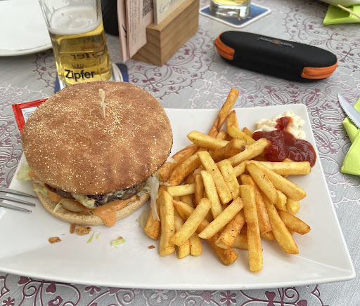 Read moreWir haben reserviert und kamen in ein nach Rauch stinkenden Raum. Also gingen wir einen Raum weiter in dem es sehr kalt war, eine Art Abstellkammer mit Fernseher auf dem Boden und irgendwelchem Krimskrams. Sah dreckig aus. Wir haben Getränke bestellt, als diese ankamen teilte uns die Kellnerin mit dass wir eine halbe Std auf das Essen warten müssen. Fanden wir doof da wir ja schon trinken hatten. Nach ca 45 min kam das Essen, es war Ok. Ich musste nachsalzen.Weil meine Freundin sich beschwert hatte dass sie hätten von Anfang an sagen sollen dass wir warten müssen, hat uns der Wirt allen einen Jägermeister ausgegeben. Der Wirt und die Kellnerin haben sich auch ganz oft entschuldigt. Trotzdem leider nicht...